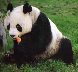 国宝大熊猫 大熊猫属食肉目,大熊猫科,是我国特产的稀有珍贵动物。野生时栖息于海拔1500--3500米之间的高山深谷茂密竹林中,大熊猫多生活在雨量充沛,气候温和,年平均气温在20℃左右的阴湿凉爽环境中,没有固定的栖息处所,喜单独活动,四处游荡,它不会筑窝,栖息于树洞、岩穴或树下乱草堆处,早晚出来觅食饮水,其余时间睡眠、视觉、听觉均较迟钝,行动缓慢。但却能快速而灵活地爬上高大的树木,而且能泅渡湍流的河溪。 大熊猫主食是各种竹类,竹笋为大熊猫最喜爱的食物。其性成熟年龄一般为5-7岁,每年3--5月份发情妊娠期约为5个月左右。 距今几十万年前是大熊猫的极盛时期,与它同期的植物大部分灭绝了,因此它被称为“活化石”现仅存活127 只,大熊猫的存亡早已为世人所关注,大熊猫的保护研究工作一直在不断地继续。 |
